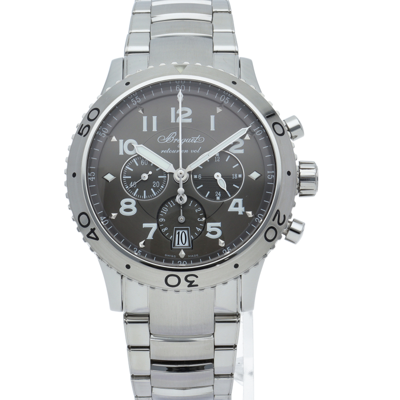 ブレゲの人気パイロットウォッチ「トランスアトランティック タイプXXI」。クロノグラフ・フライバックという組み合わせは、機械式時計が好きな方にも満足頂ける機能です。