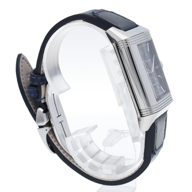 レベルソ・トリビュート・デュオは、表裏の両面に端正なステンレススチールのケースを備え、時代を超えた存在感を象徴します。1930年代にさかのぼるこのモデルの様式にならい、2つのダイヤルに命を吹き込む手巻きムーブメントを搭載し、2つの時間帯と実用的なデイ/ナイト表示を備えています。Q3988482(215.8.D4)。