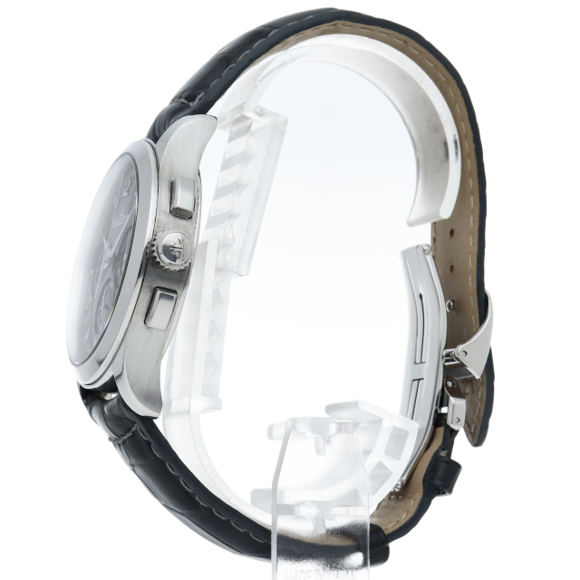 高い技術力を誇るマニュファクチュール、ジャガー・ルクルトですが、不思議にも近年ラインナップされていなかったのが、シンプルなクロノグラフでした。ついに発表された待望の一本がこの「マスタークロノグラフ」です。ムーブメントには、クロノ作動時に針飛びの少ない垂直クラッチを採用した、Cal.751A/1を搭載しています。Q153847N(174.8.C1)