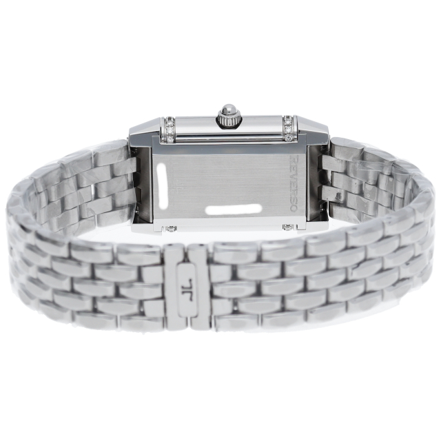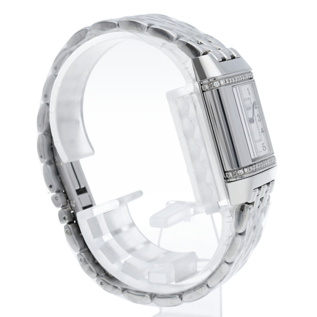 ジャガー・ルクルトを代表する人気モデル「レベルソ」。丸みを帯びたデザインでベゼルにはダイヤモンドが施され高級感溢れる1本となっております。Q2658120(265.8.08)