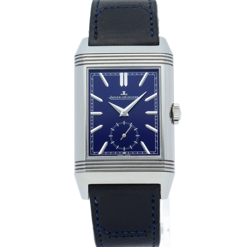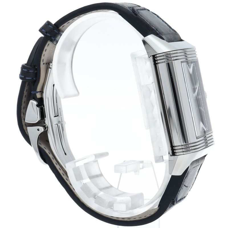 レベルソ・トリビュート・デュオは、表裏の両面に端正なステンレススチールのケースを備え、時代を超えた存在感を象徴します。1930年代にさかのぼるこのモデルの様式にならい、2つのダイヤルに命を吹き込む手巻きムーブメントを搭載し、2つの時間帯と実用的なデイ/ナイト表示を備えています。Q3988482/215.8.D4。