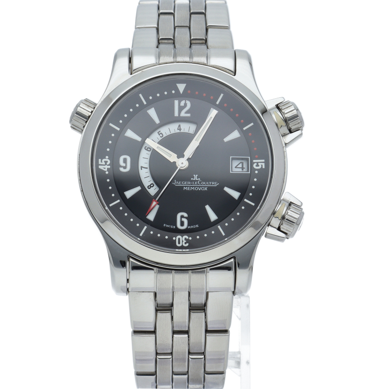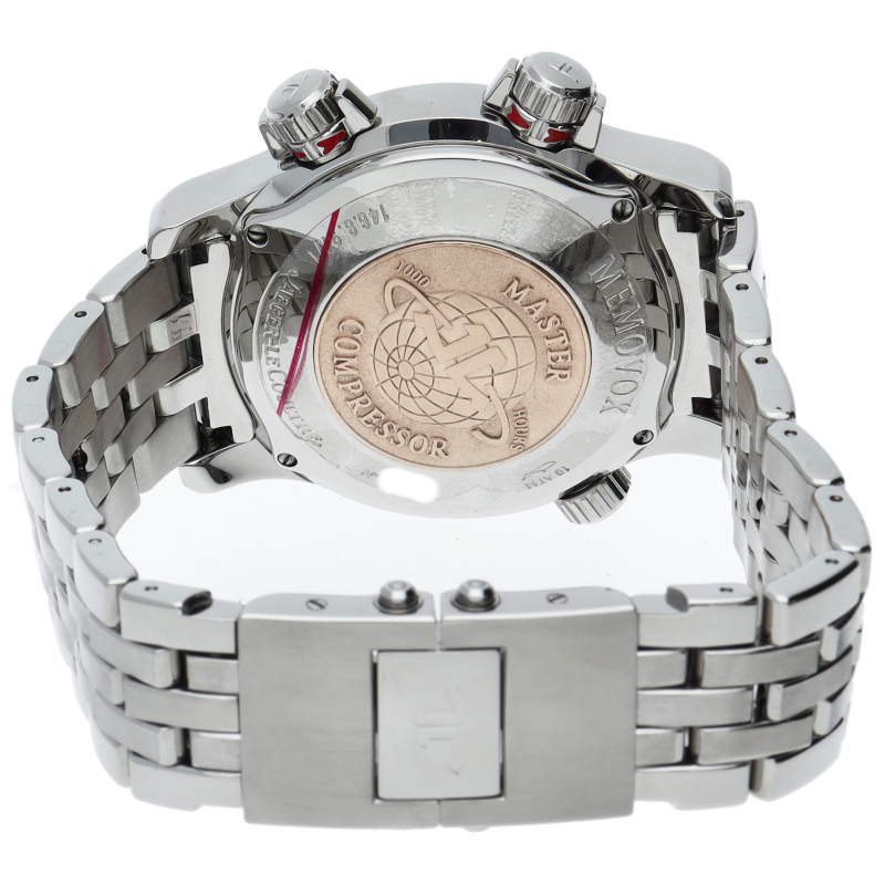 圧縮キー付きリューズを装備し、信頼性と耐久性を備える「マスターコンプレッサー」シリーズ。モデルの持つ頑丈さと裏腹に、奏でられるアラーム音は繊細で響きの良い音色です。機械式アラームを得意とするジャガールクルトならではのコンプリケーションモデルではないでしょうか。