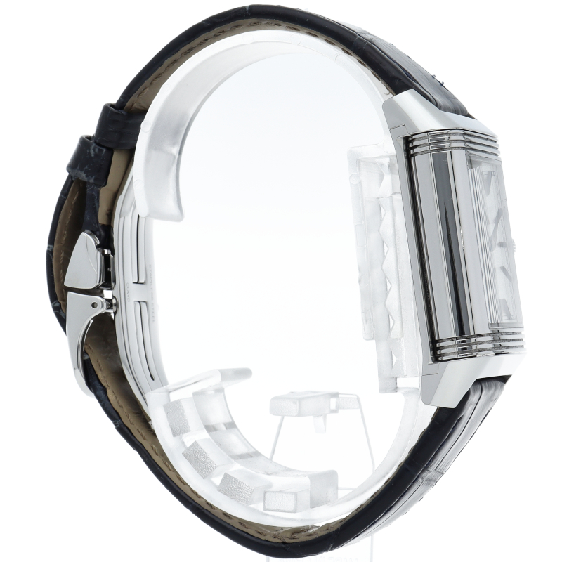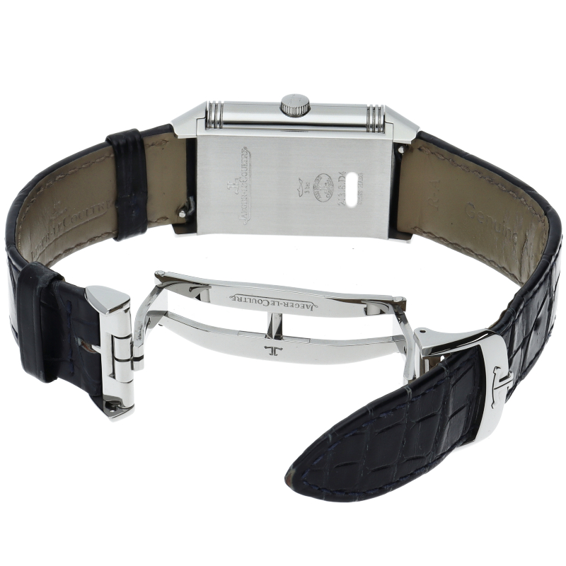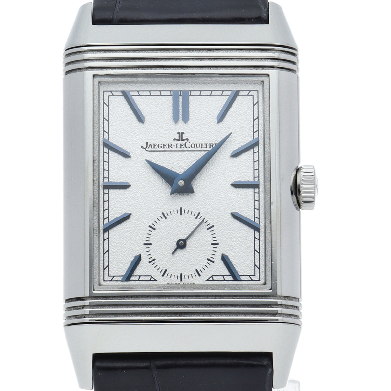 ジャガー・ルクルトを代表する人気モデル「レベルソ」。2016年にそのレベルソに敬意を表して作られた「レベルソ トリビュートデュオ」。これまでのデュオと同様に表側でホームタイムとスモールセコンドを表示し、裏側では第二時間帯と24時間表示を行います。Q3908420/213.8.D4。