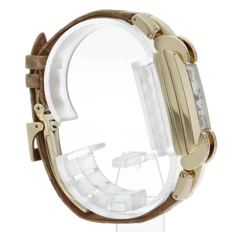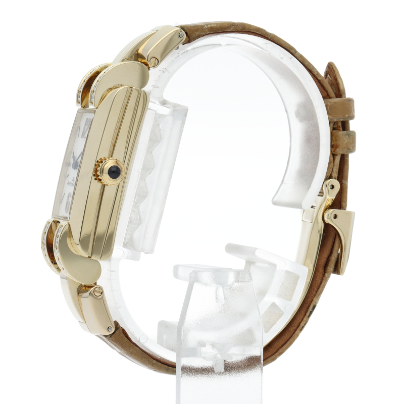 フランス語で“理想”という意味の「IDEALE(イデアル)」。K18イエローゴールドを使用した縦長のフェイスに、ダイヤモンドをラグにセッティングしたエレガントなモデル。アール・デコを彷彿とさせるデザインは、まさに芸術品といえます。