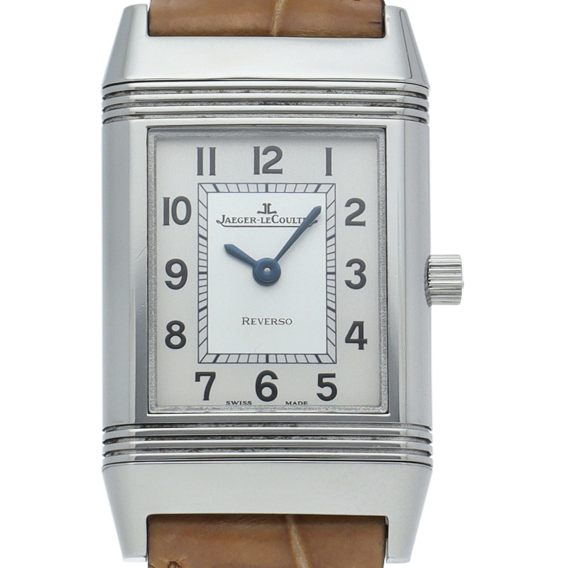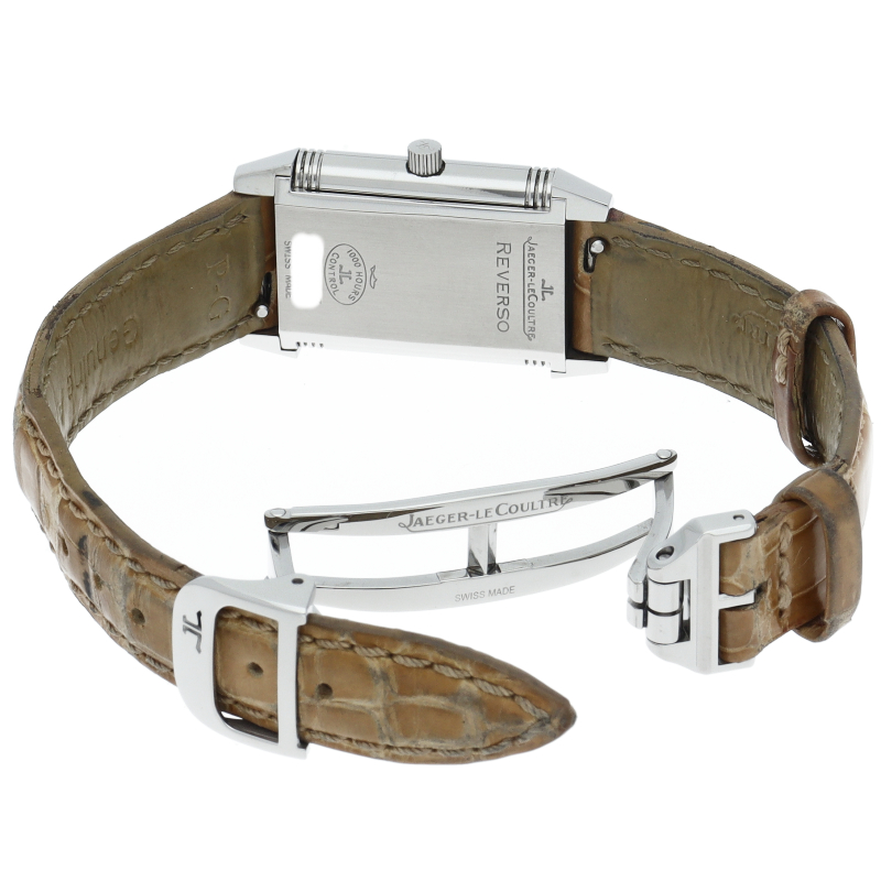 ラテン語で「回転させる」という意味を持つレベルソ。1930年頃、貴族の間で盛んだったポロ競技で運動中の衝撃からガラスとダイヤルを保護する目的で考案された時計です。ケースそのものを180度回転するという構造は、当時革新的な技術として多くの注目を集めました。260.8.47/Q2618412