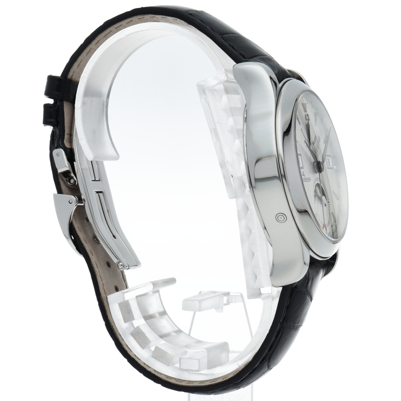 厳しいテストを繰り返す事により厳格な時計を生み出す「ジャガールクルト」。同ブランドを代表するマスターシリーズは外観の美しさ以上にムーヴメントの完成度の高さも魅力の一つ。147.8.41.S/Q151842F。