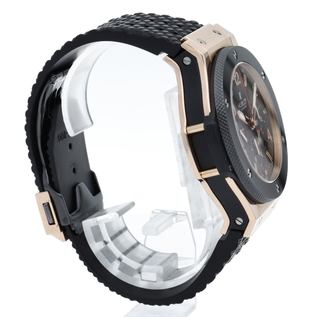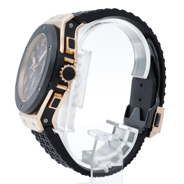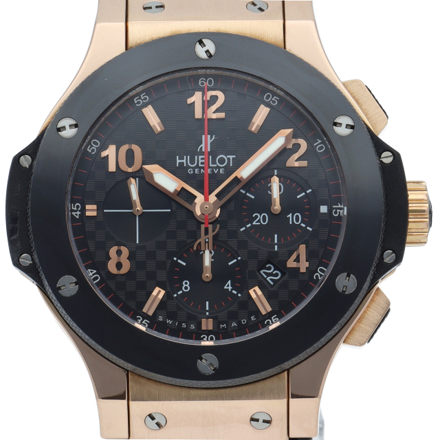 ウブロを代表するロングセラー人気商品「ビッグバン」。イエローゴールドを使用したケースにセラミックやカーボン素材を組み合わせ、豪華でありながらインパクトあるデザインが魅力的な1本です。