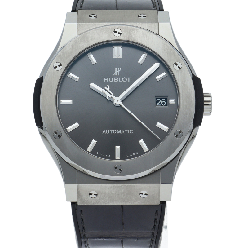 クラシックシリーズは、ウブロの原点のモデルとして、ブランドを代表するシリーズです。ケースにはチタンを採用。シンプルな作りながらも豪華な時計となっています。
