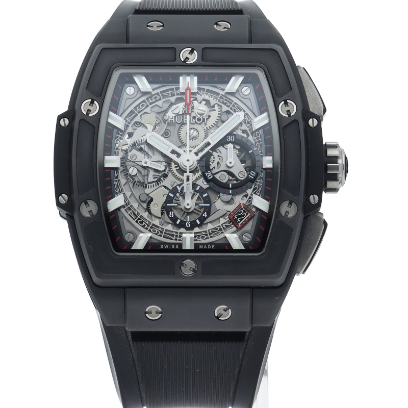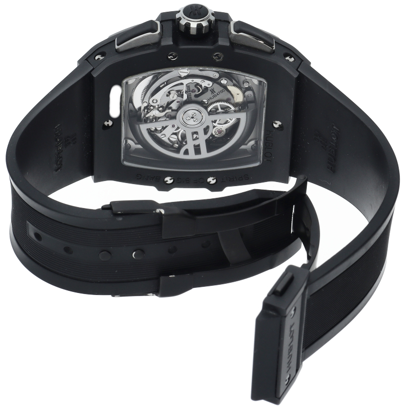 トノーケースを備えた「スピリットオブビッグバン」。ムーブメントにはウブロとゼニスがコラボレートして作られた“HUB4700”を搭載。名機エル・プリメロをベースに新しいデザインを作り上げました。