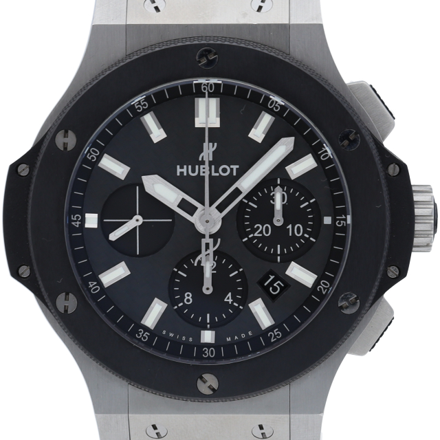 ウブロ不動のフラッグシップモデル「ビッグバン」がブラッシュアップされ、さらに高級感が増しシックで都会的な印象を与える人気モデルです。クロノグラフ機能搭載。