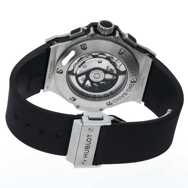 ウブロの大人気シリーズ「ビッグバン」。迫力あるケースサイズに、洗練されたデザインが見るものを圧倒するインパクトを備えております。オススメの1本。