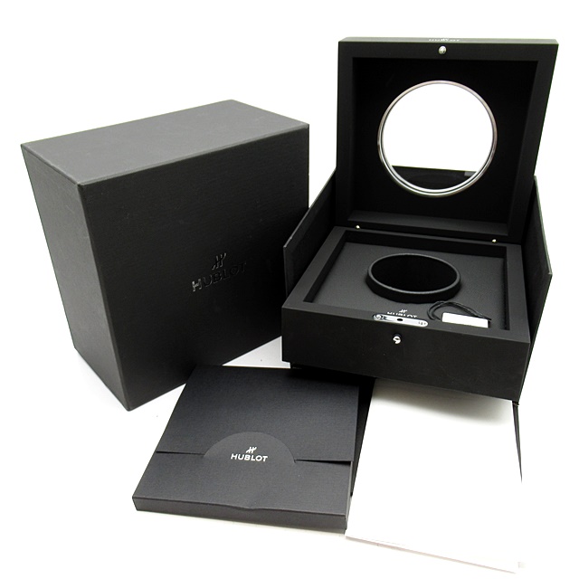 極美品。裏スケルトン。付属品の保証書はウブロのシステム移行によりEギャランティのため、Eギャランティ登録済みのコピー用紙となります。143.0g。