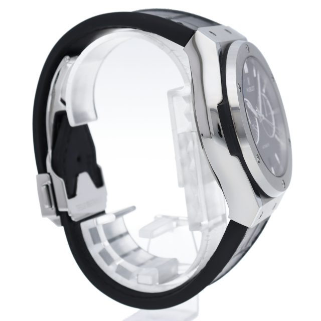 薄いケースから来る端正なエレガントさと、ビッグバン譲りの迫力とを両立した新モデルです。クロノグラフ機能搭載で裏スケルトンからはムーブメントをご覧になることができます。
