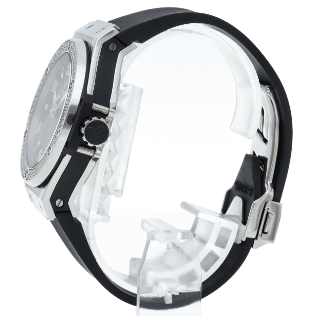 ウブロの大人気シリーズ「ビッグバン」。迫力あるケースサイズに、洗練されたデザインが見るものを圧倒するインパクトを備えております。ベゼルにはダイヤモンドが施された高級感溢れる1本です。