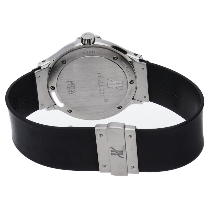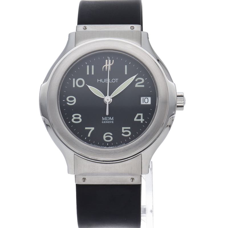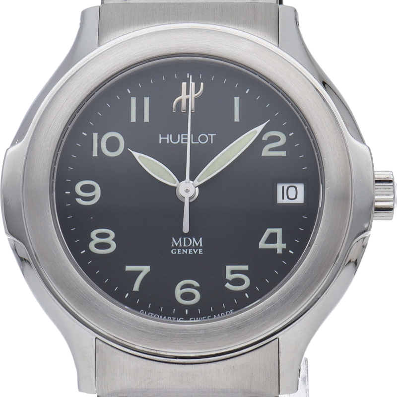 HUBLOTの創業者カルロ・ロッコ氏が経営していた時代の社名「MDM」が由来の当モデル。落ち着いたケースフォルムとサイズ感、シンプルなデザインがクラシカルエレガントな一本です。