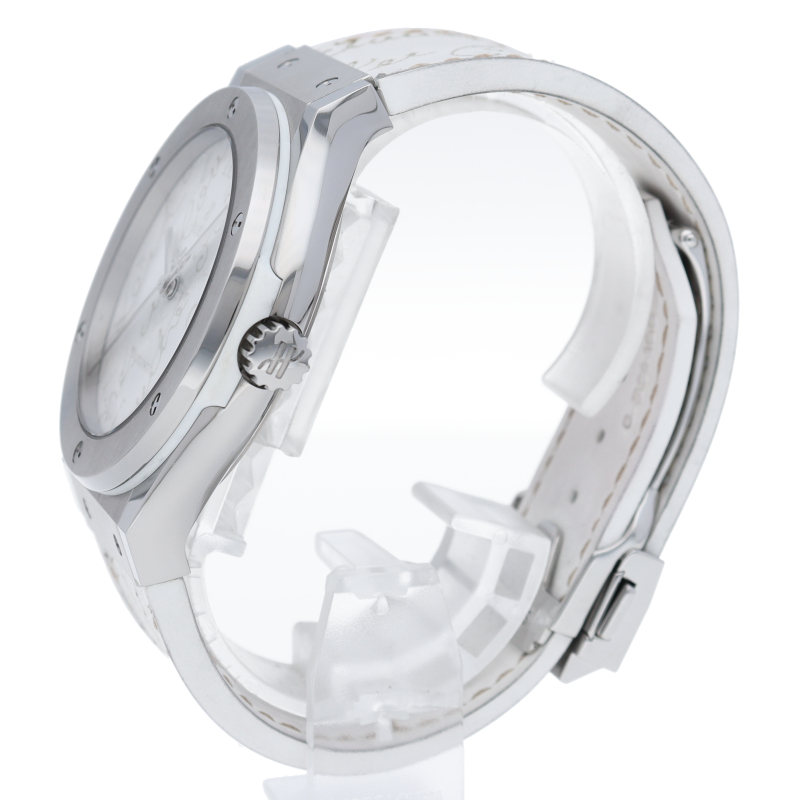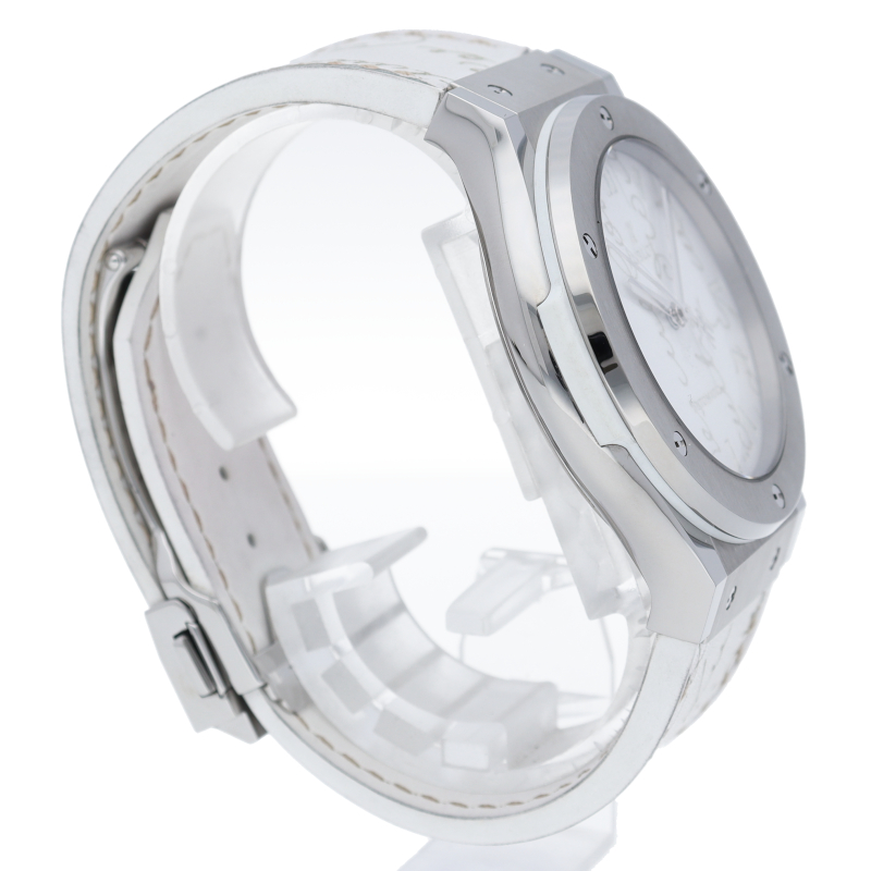 クラシックシリーズは、ウブロの原点のモデルとして、ブランドを代表するシリーズです。イタリア生まれフランス創業の名門レザーブランド「ベルルッティ」との大人気コラボレーションの2019年モデル。シンプルな作りながらも豪華な1本です。自動巻きムーブメントHUB1100搭載。
