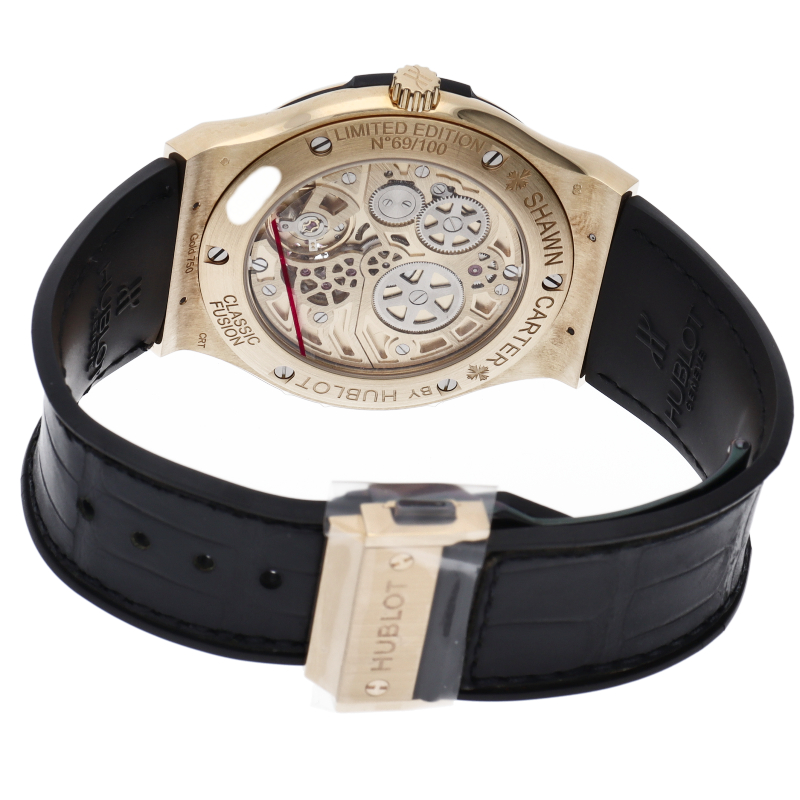 アーティストのジェイ Zことショーン・カーターとウブロのコラボレーションモデルです。自社開発した厚さ約2.9mmという超薄型手巻きムーブメント、HUB1300を組み合わせた「クラシック・フュージョン クラシコ」をベースに、ショーン・カーター・コレクションのモチーフである星形エンブレムをダイヤルに施しました。