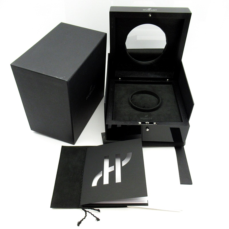 新品。裏スケルトン。付属品の保証書はウブロのシステム移行によりEギャランティのため、Eギャランティ登録済みのコピー用紙となります。