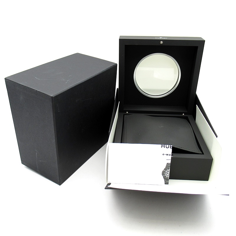 極美品。裏スケルトン。付属品の保証書はウブロのシステム移行によりEギャランティのため、Eギャランティ登録済みのコピー用紙となります。
