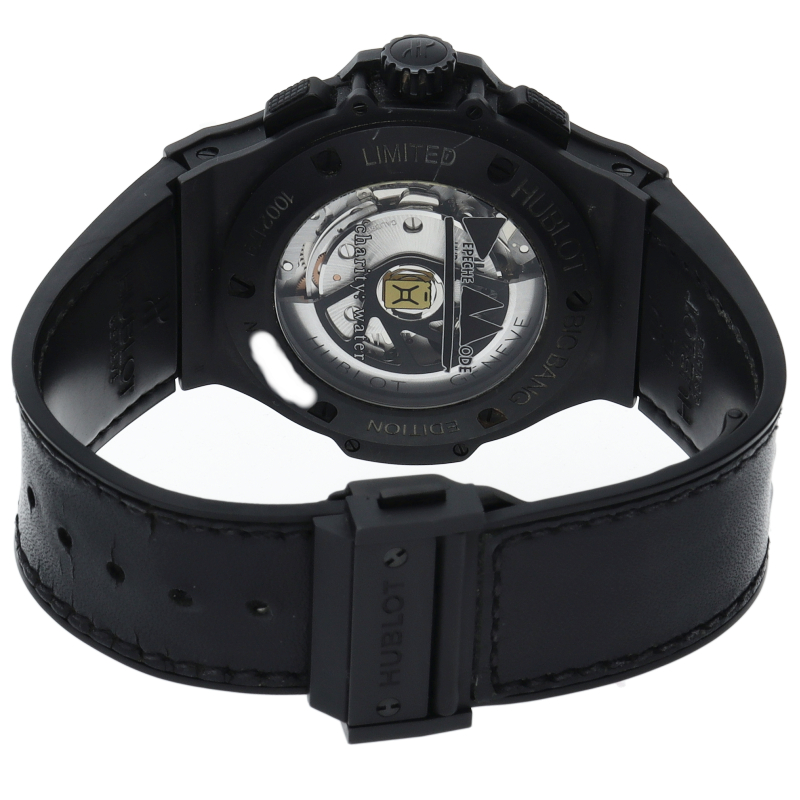 シンセ・ポップの代表格である人気英国バンド「デペッシュ・モード」とウブロがチャリティーパートナーシップを締結したことを記念して製作された世界250本の限定モデル。発展途上国の20カ国、320万人以上の人々に、安全かつ清潔な飲料水を届けた実績で知られるNPO団体”チャリティーウォーター”を支援するために製作されました。ピラミッド型モチーフを随所にあしらった個性的な一本です。