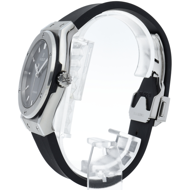 異素材の融合というコンセプトの元、ウブロの創業より大切にしてきたクラシックを重視した1本。シンプルなデザインに薄型ケースのこちらの商品は爽やかでスマートな一本でございます。