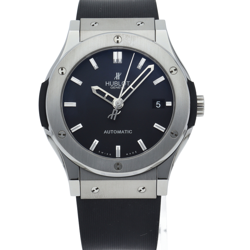 クラシックシリーズは、ウブロの原点のモデルとして、ブランドを代表するシリーズです。ケースにはチタンを採用。シンプルな作りながらも豪華な時計となっています。