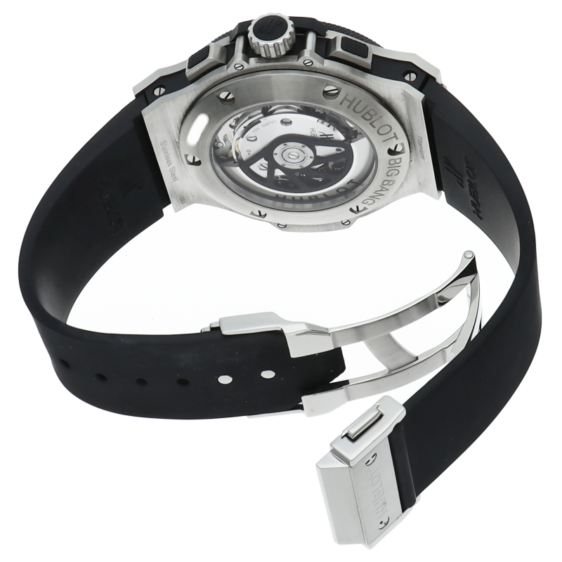 ウブロの大人気シリーズ「ビッグバン」。迫力あるケースサイズに、洗練されたデザインが見るものを圧倒するインパクトを備えております。オススメの1本。