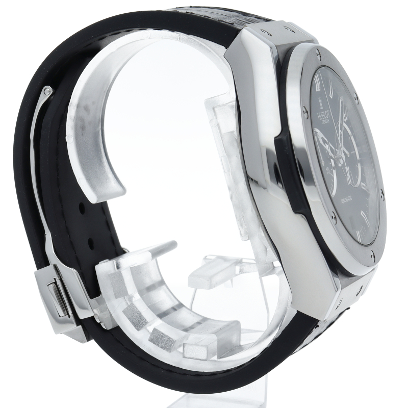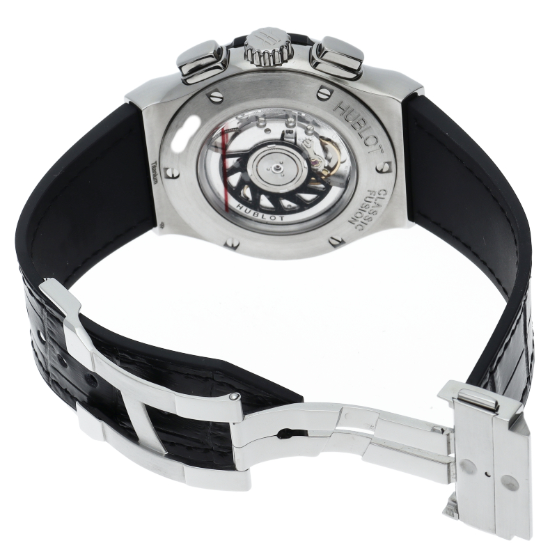 薄いケースから来る端正なエレガントさと、ビッグバン譲りの迫力とを両立した新モデルです。クロノグラフ機能搭載で裏スケルトンからはムーブメントをご覧になることができます。