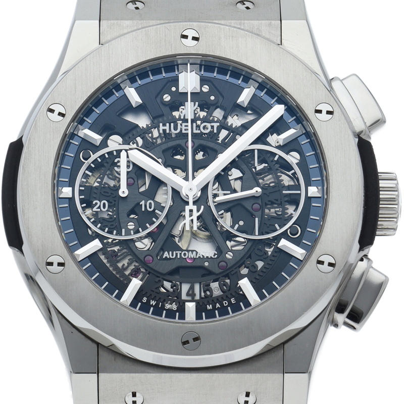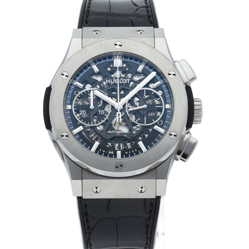 クラシックシリーズは、ウブロの原点のモデルとして、ブランドを代表するモデルです。これをリデザインしたのがこちらのクラシック フュージョン アエロフュージョンです。職人の技が光るスケルトン文字盤を見て、着けて楽しめる男のステータスウォッチです。