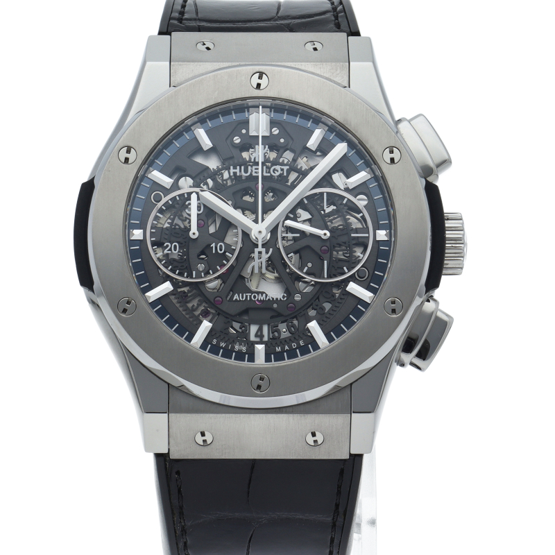 クラシックシリーズは、ウブロの原点のモデルとして、ブランドを代表するモデルです。これをリデザインしたのがこちらのクラシック フュージョン アエロフュージョンです。職人の技が光るスケルトン文字盤を見て、着けて楽しめる男のステータスウォッチです。