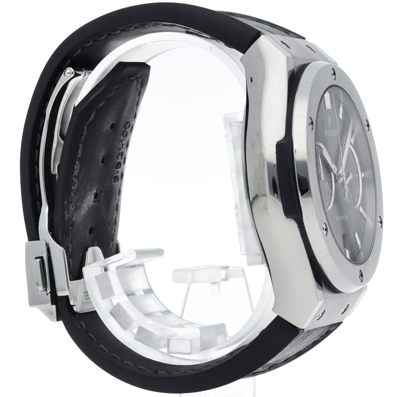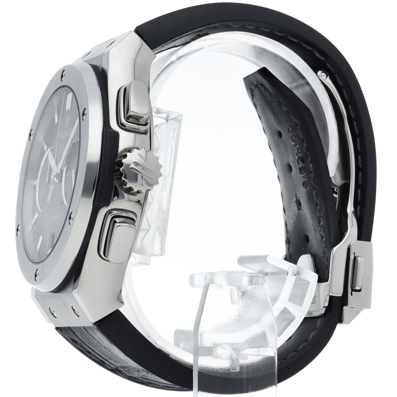 薄いケースから来る端正なエレガントさと、ビッグバン譲りの迫力とを両立した新モデルです。クロノグラフ機能搭載で裏スケルトンからはムーブメントをご覧になることができます。