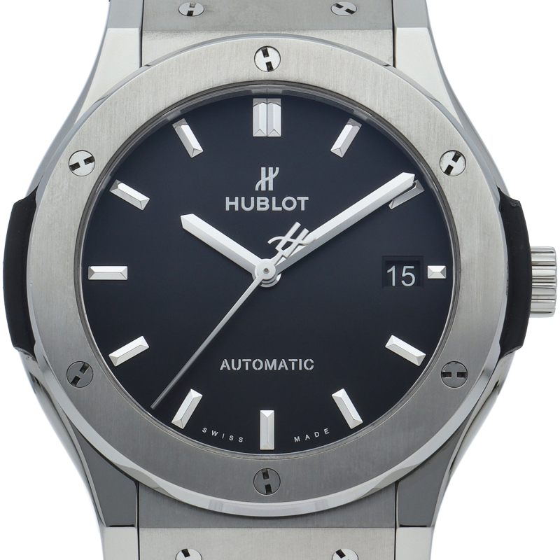 クラシックシリーズは、ウブロの原点のモデルとして、ブランドを代表するシリーズです。ケースにはチタンを採用。シンプルな作りながらも豪華な時計となっています。