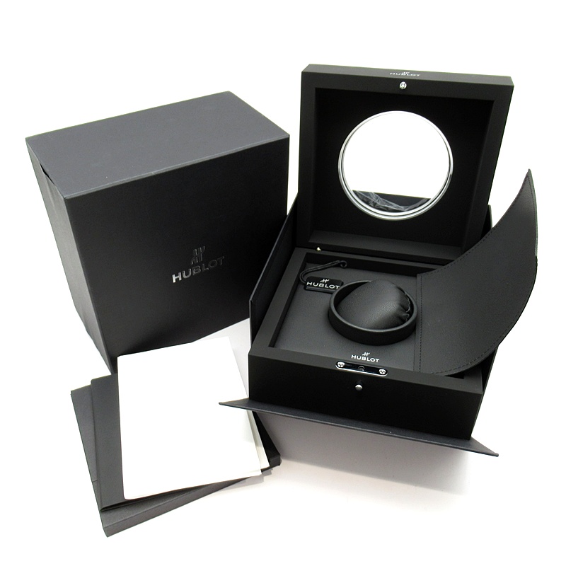 極美品。裏スケルトン。付属品の保証書はウブロのシステム移行によりEギャランティのため、Eギャランティ登録済みのコピー用紙となります。