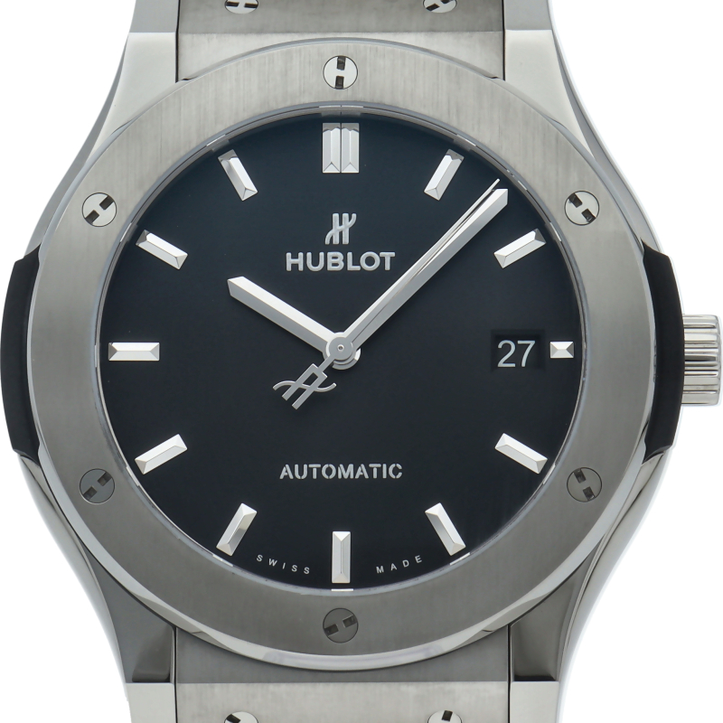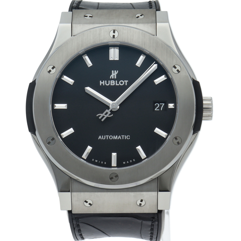 クラシックシリーズは、ウブロの原点のモデルとして、ブランドを代表するシリーズです。ケースにはチタンを採用。シンプルな作りながらも豪華な時計となっています。