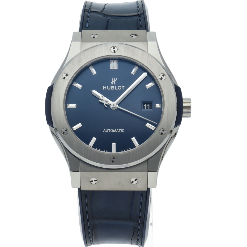 クラシックシリーズは、ウブロの原点のモデルとして、ブランドを代表するシリーズです。ケースにはチタンを採用。シンプルな作りながらも豪華な時計となっています。