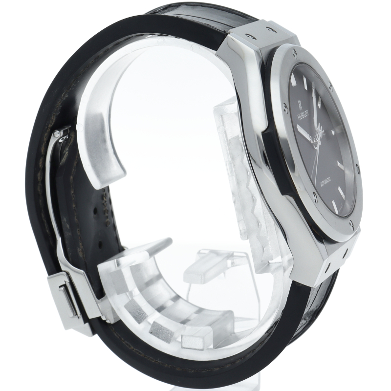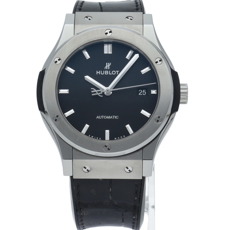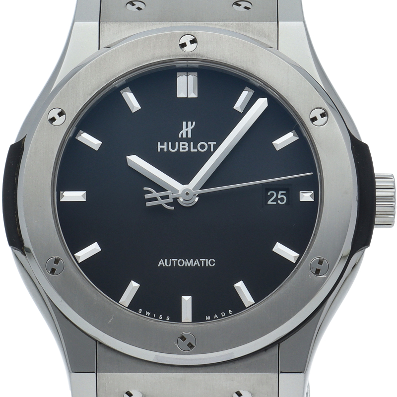 クラシックシリーズは、ウブロの原点のモデルとして、ブランドを代表するシリーズです。ケースにはチタンを採用。シンプルな作りながらも豪華な時計となっています。