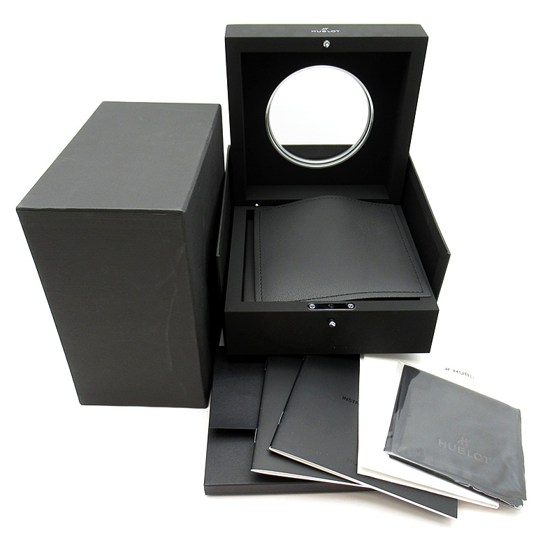 極美品。裏スケルトン。付属品の保証書はウブロのシステム移行によりEギャランティのため、Eギャランティ登録済みのコピー用紙となります。