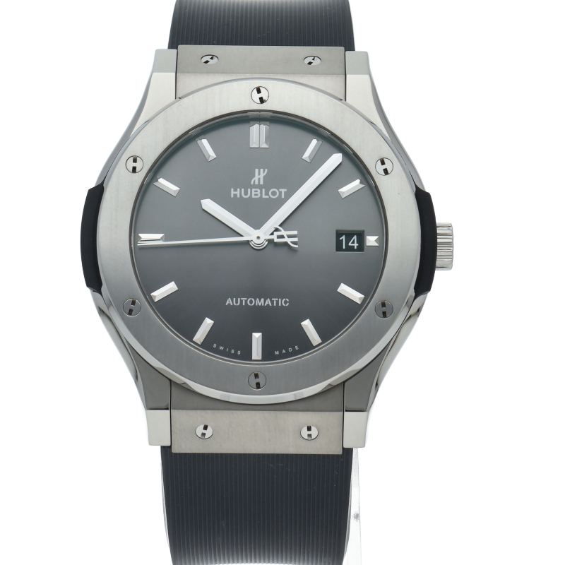 クラシックシリーズは、ウブロの原点のモデルとして、ブランドを代表するシリーズです。ケースにはチタンを採用。シンプルな作りながらも豪華な時計となっています。