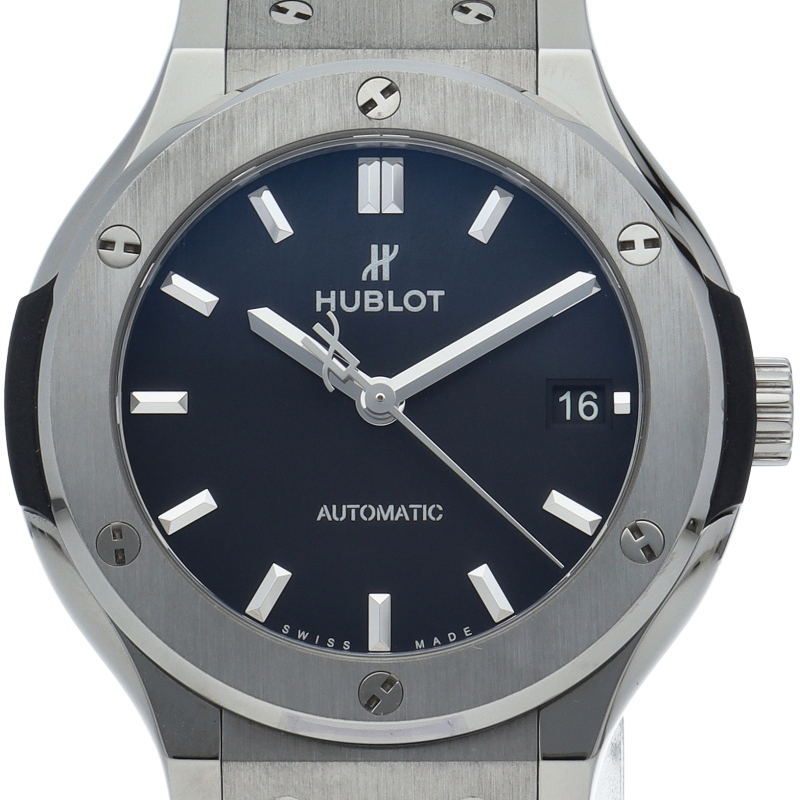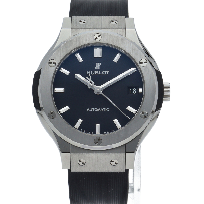 クラシックシリーズは、ウブロの原点のモデルとして、ブランドを代表するシリーズです。ケースにはチタンを採用。シンプルな作りながらも豪華な時計となっています。