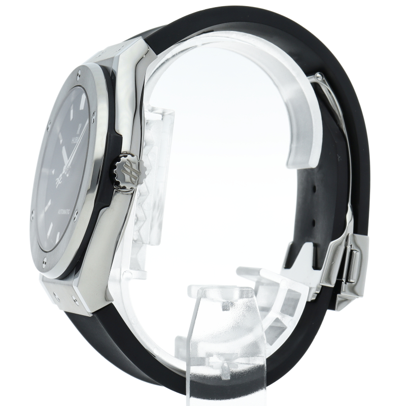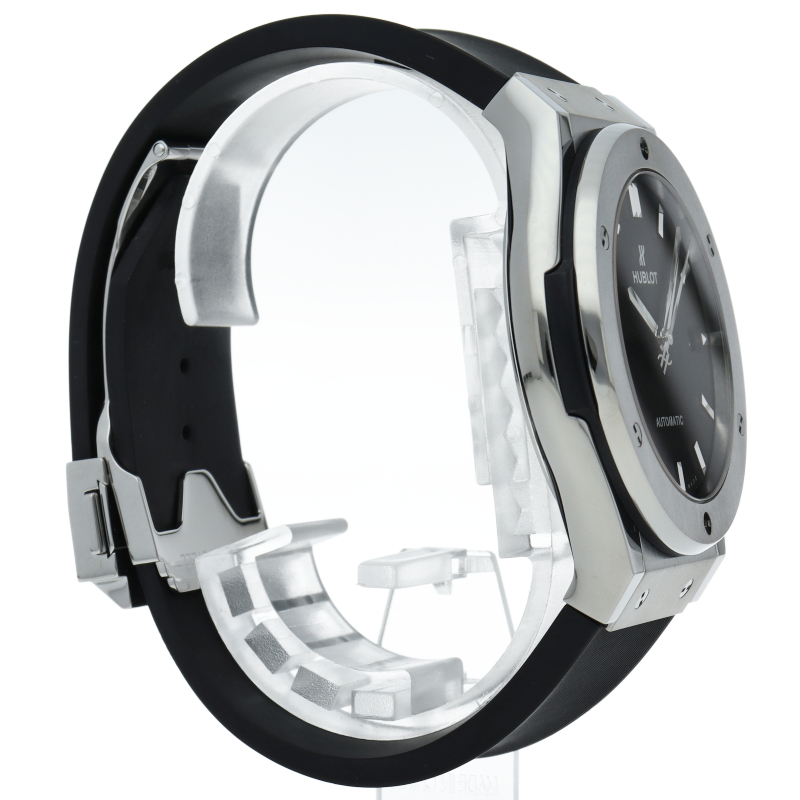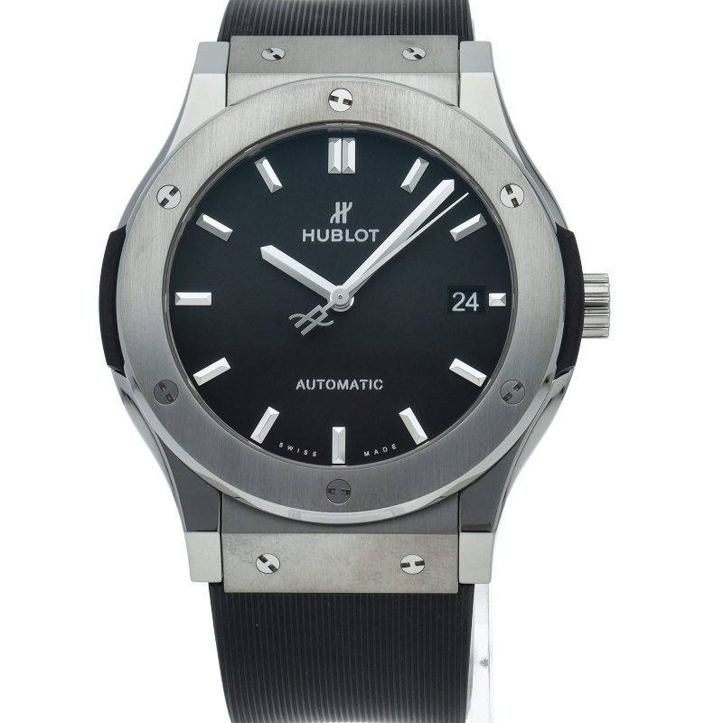クラシックシリーズは、ウブロの原点のモデルとして、ブランドを代表するシリーズです。ケースにはチタンを採用。シンプルな作りながらも豪華な時計となっています。