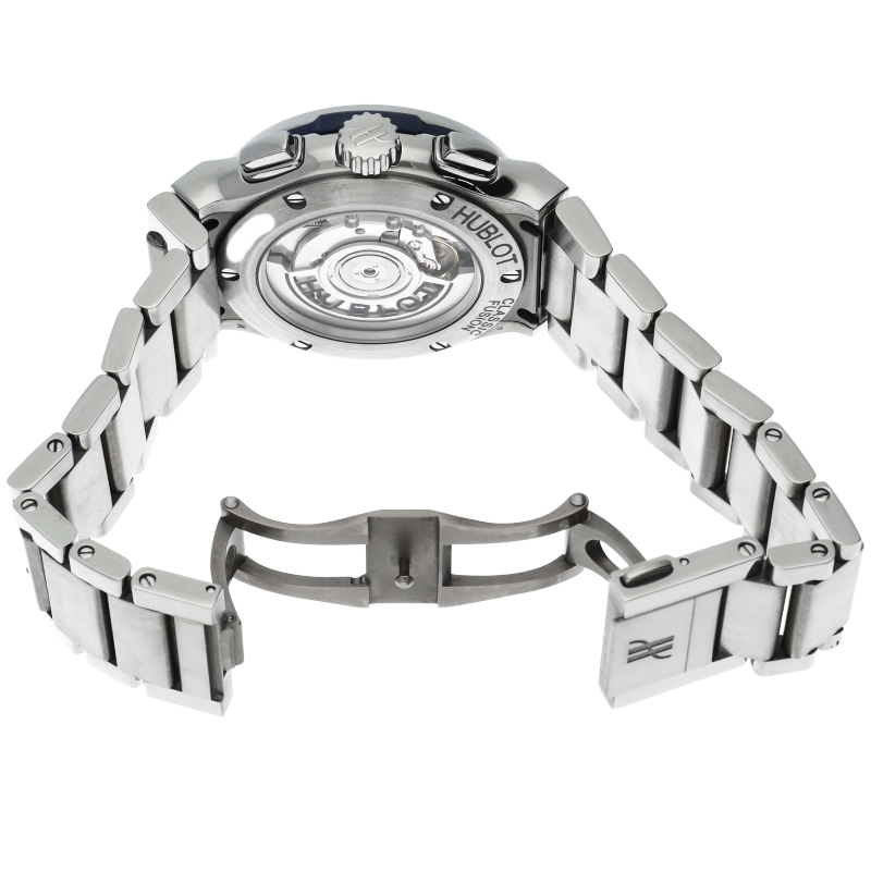薄いケースから来る端正なエレガントさと、ビッグバン譲りの迫力とを両立した新モデルです。クロノグラフ機能搭載で裏スケルトンからはムーブメントをご覧になることができます。
