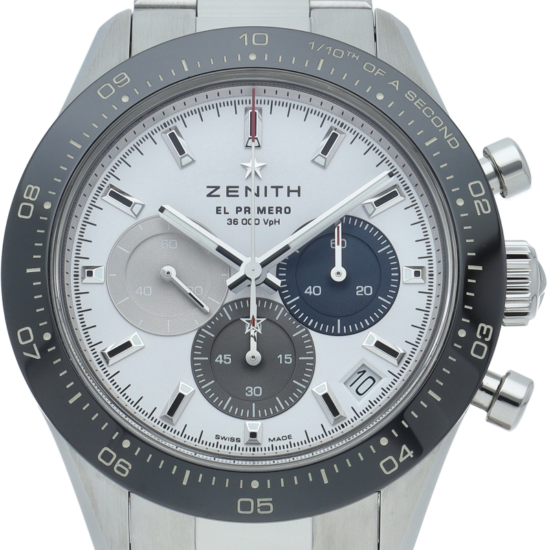 クロノマスター スポーツは、ゼニスが50年以上に渡って探求してきたスポーティーなクロノグラフと自動巻クロノグラフ キャリバーの頂点に立つモデルです。1/10秒単位の精度で経過時間を計測および表示する最新のエル・プリメロ クロノグラフ キャリバーを搭載したこのモデルは、現代的でありながら見間違えることのないゼニスらしいデザインを備えています。