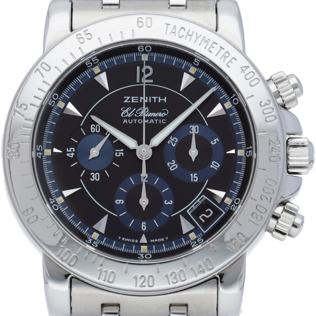 名機エルプリメロを搭載した、ゼニスを代表するモデル「エルプリメロ レインボー」ブルーフェイスのクールな逸品です。すでに生産が終了し、良い個体の数も少なくなっています。