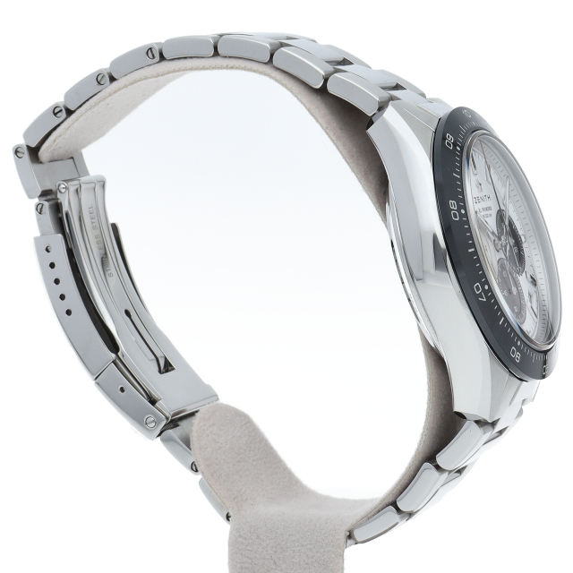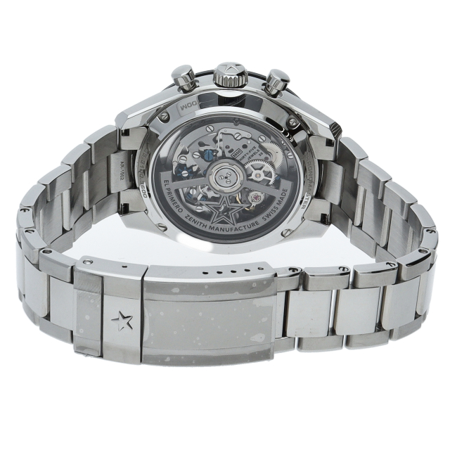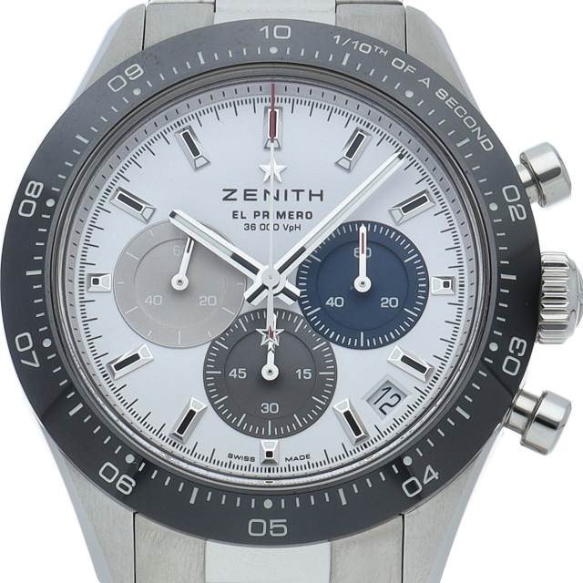 クロノマスター スポーツは、ゼニスが50年以上に渡って探求してきたスポーティーなクロノグラフと自動巻クロノグラフ キャリバーの頂点に立つモデルです。1/10秒単位の精度で経過時間を計測および表示する最新のエル・プリメロ クロノグラフ キャリバーを搭載したこのモデルは、現代的でありながら見間違えることのないゼニスらしいデザインを備えています。