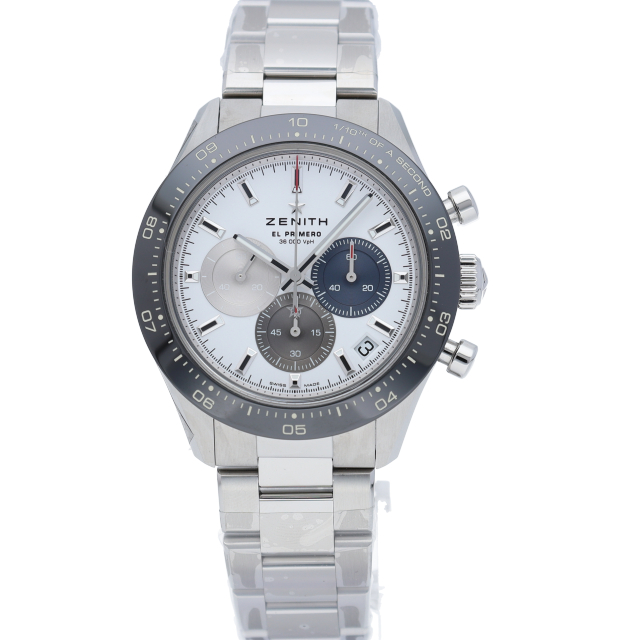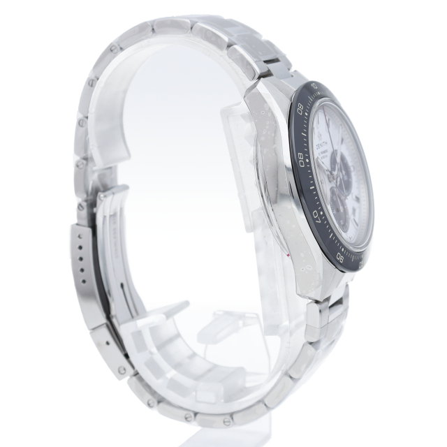 クロノマスター スポーツは、ゼニスが50年以上に渡って探求してきたスポーティーなクロノグラフと自動巻クロノグラフ キャリバーの頂点に立つモデルです。1/10秒単位の精度で経過時間を計測および表示する最新のエル・プリメロ クロノグラフ キャリバーを搭載したこのモデルは、現代的でありながら見間違えることのないゼニスらしいデザインを備えています。