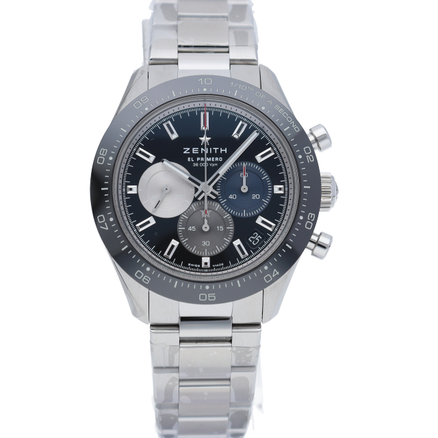 クロノマスター スポーツは、3色文字盤、ポンプ型のプッシュボタン、スチール製ブレスレットとセラミック製のブラックベゼルなど、過去のゼニス クロノグラフの要素を現代的な41mmケースに組み込んでいます。このバージョンには、ブラックの文字盤と一体型のスチール製ブレスレットが付属しています。