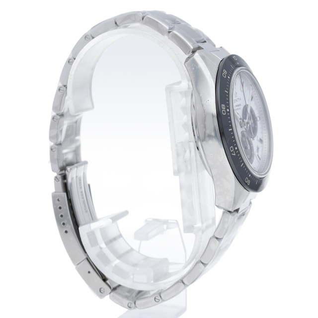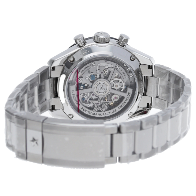 クロノマスター スポーツは、ゼニスが50年以上に渡って探求してきたスポーティーなクロノグラフと自動巻クロノグラフ キャリバーの頂点に立つモデルです。1/10秒単位の精度で経過時間を計測および表示する最新のエル・プリメロ クロノグラフ キャリバーを搭載したこのモデルは、現代的でありながら見間違えることのないゼニスらしいデザインを備えています。