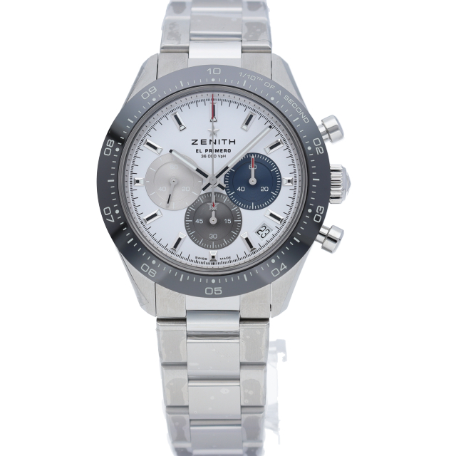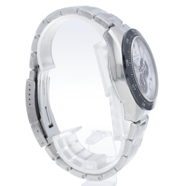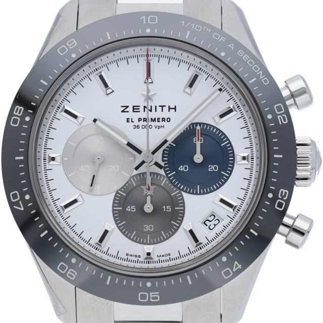 クロノマスター スポーツは、ゼニスが50年以上に渡って探求してきたスポーティーなクロノグラフと自動巻クロノグラフ キャリバーの頂点に立つモデルです。1/10秒単位の精度で経過時間を計測および表示する最新のエル・プリメロ クロノグラフ キャリバーを搭載したこのモデルは、現代的でありながら見間違えることのないゼニスらしいデザインを備えています。
