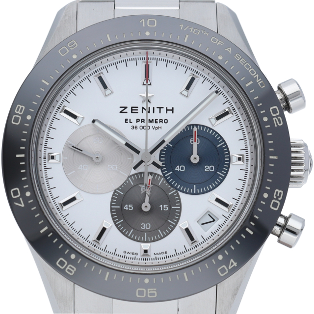 クロノマスター スポーツは、ゼニスが50年以上に渡って探求してきたスポーティーなクロノグラフと自動巻クロノグラフ キャリバーの頂点に立つモデルです。1/10秒単位の精度で経過時間を計測および表示する最新のエル・プリメロ クロノグラフ キャリバーを搭載したこのモデルは、現代的でありながら見間違えることのないゼニスらしいデザインを備えています。