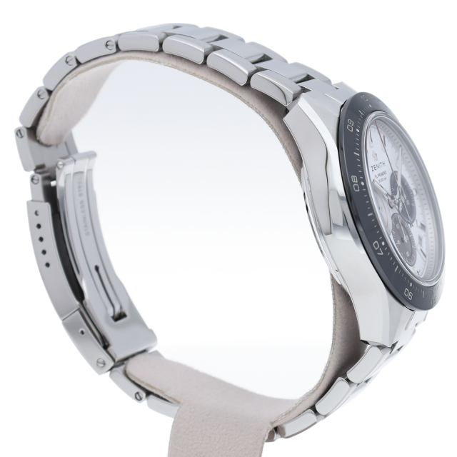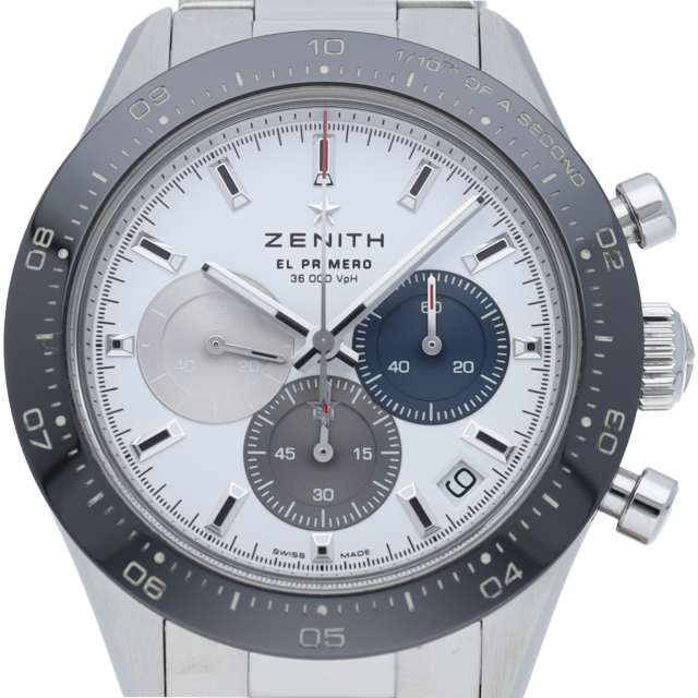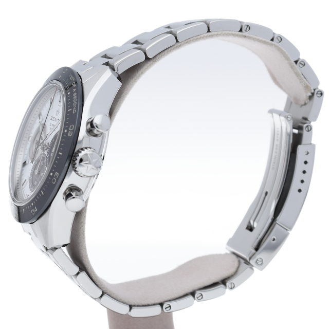 クロノマスター スポーツは、ゼニスが50年以上に渡って探求してきたスポーティーなクロノグラフと自動巻クロノグラフ キャリバーの頂点に立つモデルです。1/10秒単位の精度で経過時間を計測および表示する最新のエル・プリメロ クロノグラフ キャリバーを搭載したこのモデルは、現代的でありながら見間違えることのないゼニスらしいデザインを備えています。